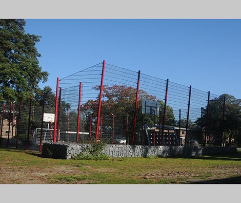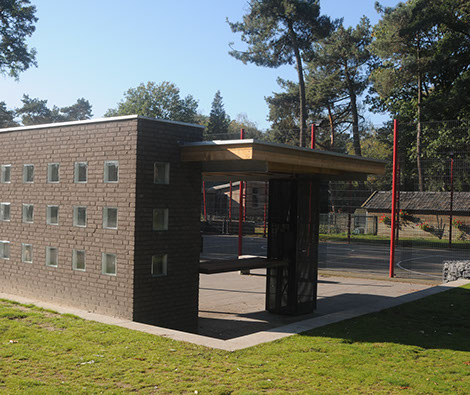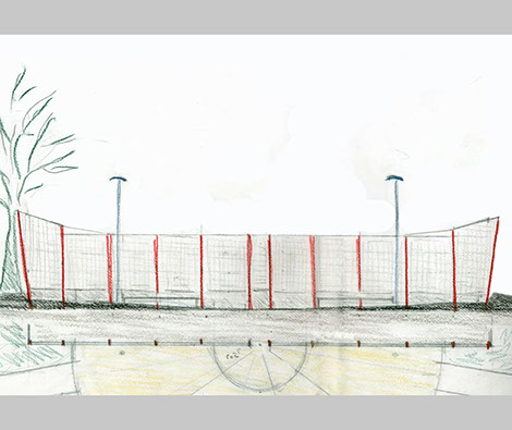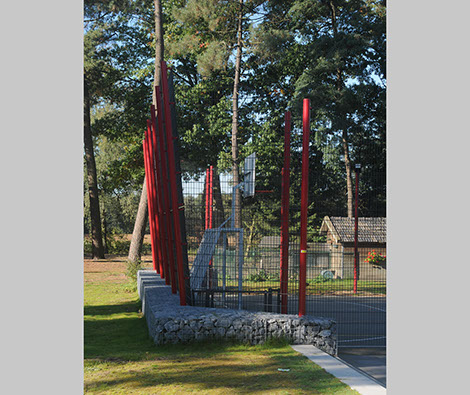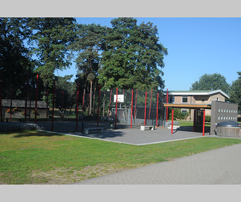 Het project bestaat uit een zogenaamde pannakooi, een plein en een paviljoen. Het budget was beperkt, toch wilde men geen doorsnee object maar als het even kon een project met smoel. Voor het hekwerk is gebruik gemaakt van standaard stalen dubbel-staaf-roosters in de kleur antraciet die doorgaans voor dit soort objecten worden gebruikt. De staanders werden speciaal voor dit project ontwikkeld. Voor een deel werden deze schuin geplaatst. Tegen relatief geringe meerkosten kon hierdoor een eigen karakter aan de pannakooi worden gegeven. De kopse kanten van de pannakooi zijn voorzien van een plint van stapelstenen in draadkorf. Het paviljoen is multifunctioneel, naast overdekte zitplek kan het ook gebruikt worden als uitgiftepunt voor drankjes en hapjes en als kleine buitenbioscoop.