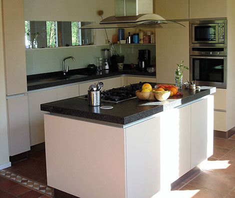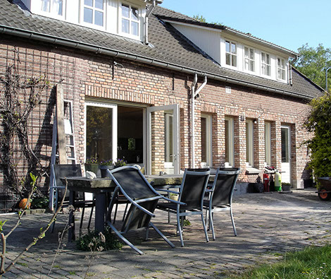 Verbouwing van een voormalige boerderij. Het stalgedeelte is bij de woonruimte getrokken. De gevels van het stalgedeelte waren door de vele verbouwingen in het verleden flink gehavend. Gekozen is om hier alle ramen en deuren te verwijderen en te vervangen door een reeks identieke smalle raamkozijnen in voor- en achtergevel. Het metselwerk is aangeheeld en het geheel opnieuw gevoegd. De keuken is aan de tuinzijde gesitueerd. Een langgerekt, smal raam boven het aanrecht geeft via de aangrenzende ruimte toch zicht op de straatzijde.