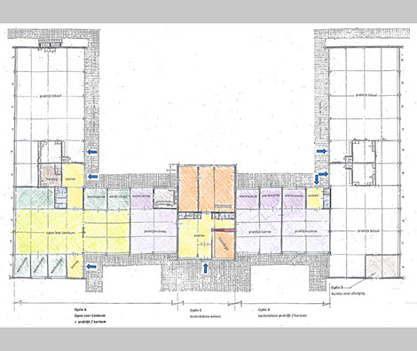 Bij de start van het project werd nog serieus gedacht aan vervangende nieuwbouw voor een verouderd schoolgebouw (vakopleiding). Het bestaande gebouw was zowel functioneel als bouw- en installatietechnisch versleten. Toen het programma van eisen vorm begon te krijgen werd al snel duidelijk dat de toekomstperspectieven te onzeker en de beschikbare financiƫle middelen voor nieuwbouw ontoereikend zouden zijn. Daarop werd besloten de bestaande school voorlopig in stand te houden en minimaal te verbouwen. Getracht is om met het zeer beperkte budget toch zo veel mogelijk van de nieuwe onderwijsvisie te realiseren. Gekozen is om niet te proberen de kwaliteit van het gehele gebouw op te krikken, maar om prioriteiten te stellen en het daarvoor beschikbare geld heel gericht in een aantal verbeteringen te steken. Hierdoor kon toch een belangrijk deel van het eerder geformuleerde programma van eisen worden gerealiseerd. Door een gunstige aanbesteding konden ook nog een aantal wensen die als optie in het plan waren gestopt eveneens gerealiseerd worden. Het industriƫle karakter van het gebouw is behouden. Er is veel zorg besteed aan het kleurenschema. Zowel de leerkrachten als leerlingen waren met het resultaat erg in hun nopjes. Zij ervoeren hun school zo goed als nieuw.