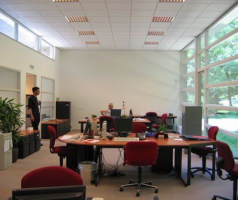 Het project betreft de verbouwing en uitbreiding van het hoofdkantoor van een zorginstelling. De bestaande locatie was verouderd en had een sterk naar binnen gericht karakter. Voorafgaand aan dit plan werd door ons een onderzoek uitgevoerd naar de werkplekbehoefte van de organisatie. Wij kregen dit verzoek omdat men ad hoc de ene verbouwing na de andere bleef doen zonder dat hier een lange termijnvisie aan ten grondslag lag. Het onderzoek leidde tot een gevarieerd en uitgebalanceerd ruimtelijk programma met grote en kleine vergaderruimtes, grotere ruimtes met flexplekken, kleinere ruimtes met vaste werkplekken, concentratieruimtes, e.a. Voorts wenste men dat het nieuwe gebouw uitdrukking zou geven aan een sfeer van dynamiek, openheid en samenwerking. Het plan voorziet in een complete herinrichting van de bestaande bouw plus een uitbreiding. Kenmerkend is een geheel rondlopende ontsluiting met een besloten patio in het midden. Glaspuien en –deuren verschaffen de nodige transparantie. Bij de grotere ruimtes met flexplekken ontbreken deuren.