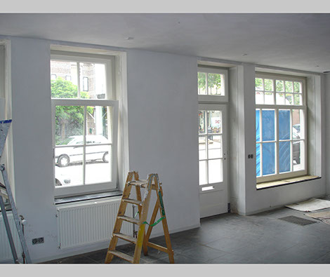Het pand is gebouwd omstreeks 1700 en was bij start van dit project een regelrechte bouwval. Desondanks had het de status van gemeentelijk monument. De planvorming heeft plaatsgevonden in nauw overleg met de dienst monumenten en monumentenwacht. Alleen de gevels konden worden behouden en gerestaureerd. Het hele pand is voorzien van een nieuwe dragende vloer met schroefpaalfundering. Bestaande buitengevels zijn hieraan opgehangen. Het binnenwerk en de kap zijn compleet vernieuwd. Het was de wens van de opdrachtgever (een beeldend kunstenaar) om het pand zo flexibel mogelijk in te richten. Op de begane grond is ruimte voor een winkel plus een appartement. De verdieping kan apart worden ontsloten en bevat eveneens een compleet appartement.