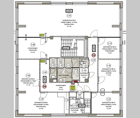 Bij de tijdelijke Paljaslocatie op het terrein van Sensis in Grave dienden de nodige onderwijsvoorzieningen gerealiseerd te worden. Daartoe hebben wij een leegstaand woongebouw van drie verdiepingen op eenvoudige wijze omgebouwd tot onderwijslocatie.